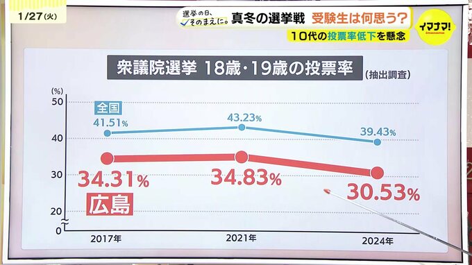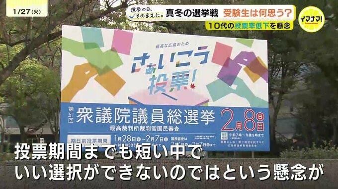 きょう公示、来月8日投開票の衆議院選挙。真冬の選挙戦は36年ぶりということで、投票率への影響が気になります。そして今は、受験シーズン真っ只中でもあります。18歳が投票できるようになって初めての2月投開票の衆議院選挙です。10代の投票率低下が懸念される中、大学入試を控える受験生に話を聞きました。