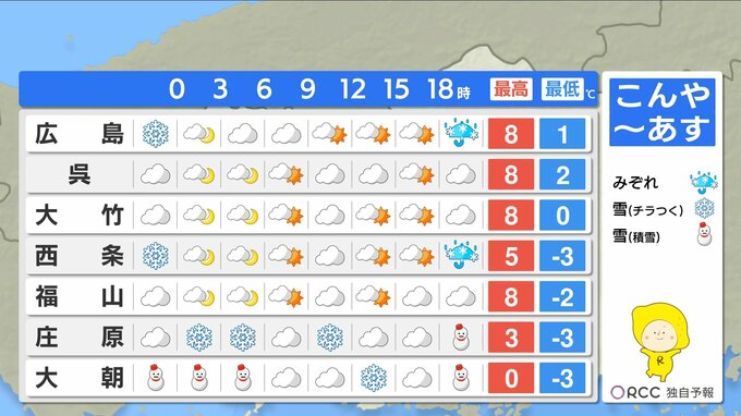 南部では日差しが届く時間もありますが、日中の気温は1ケタで真冬の厳しい寒さが続くでしょう。防寒対策は万全にしてお過ごしください。朝晩の冷え込みによって、現在積雪している所では、路面が凍結しやすくなります。