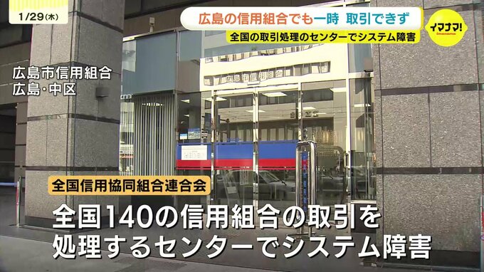 全国の信用組合の取引を処理しているセンターで、29日未明、障害が発生し広島県内の信用組合でも一時取引ができなくなりました。