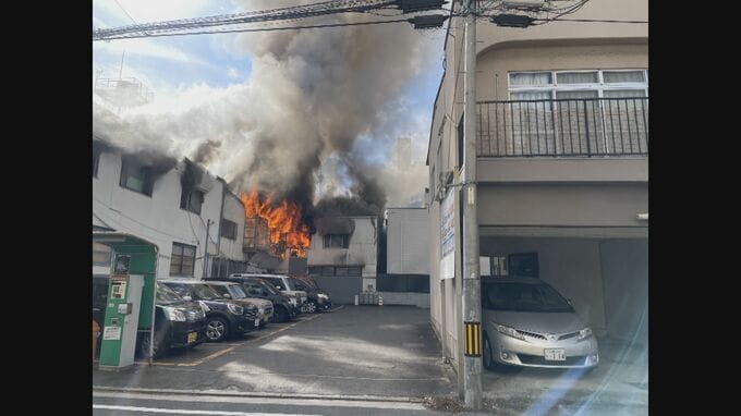 消防によりますと、31日午前11時10分ごろ、広島市中区西十日市町で「アパートの2階から炎が見える」と通報がありました。消防車16台が出動し消火にあたっています。