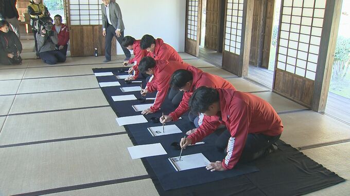 まずは、飫肥城(おびじょう)の城下にある歴史的な建物「振徳堂」で書道体験です。