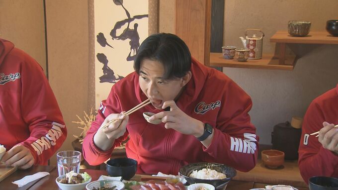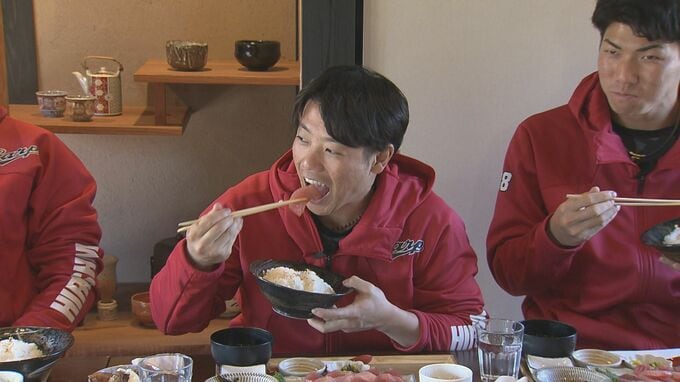 キャンプの疲れを癒やすため、5人はマグロ料理やチキン南蛮に舌鼓を打ちました。