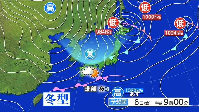 あすも高気圧の影響で南部を中心に日差しが届くでしょう。暖かい空気に覆われ、日中は春の陽気になりそうです。ただ、あすの後半には次第に強い寒気が南下し、夜には北部で雪の降るところがある見込みです。