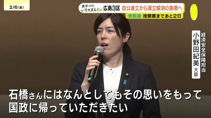 自民・石橋氏の戦い 小野田紀美大臣「高市さんと政策すごく近い」