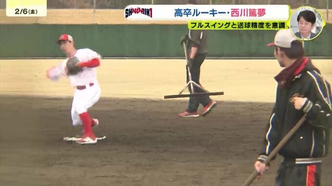 【カープ日南キャンプ】はつらつ 高卒ルーキー西川篤夢 目的意識しっかり持って 2026年2月6日(金) 22:42 国内 西川は「打撃の部分ではフルスイングをこのキャンプでやっていきたい」「守備は送球にこだわって、送球の精度をもっと上げられるようにやっていきたい」と話します。