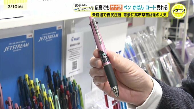 ハンズミナモア広島店では、高市総理が使っているものと同じペンが売られていました。会見や、国会の委員会などで高市総理が使っていた、ライトピンクのペン。ジェットストリームと呼ばれる多機能型のペンです。高市総理が就任したあと、このペンがよく売れているそうです。