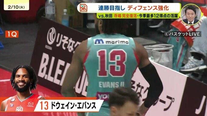 試合序盤、ドラゴンフライズは前日の反省を活かし、徹底して「ゴール下を固める」戦略を遂行。強度の高いディフェンスで相手のリズムを狂わせると、攻撃ではドウェイン・エバンス選手を中心に効率よく得点を重ね、主導権を握ります。