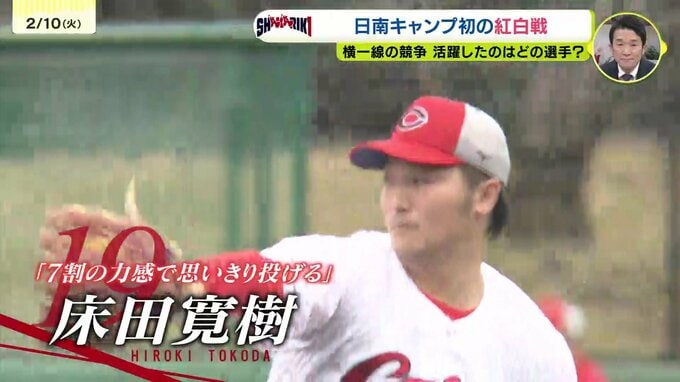 白組先発の床田は、おとといのシート打撃では3安打を浴びるなど不安が残る内容でした。
