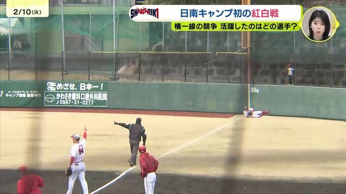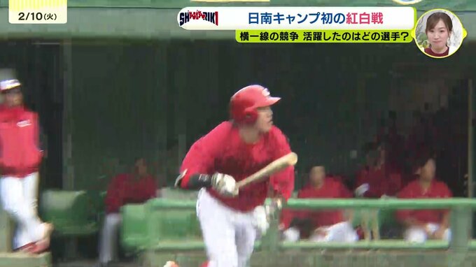 カープの紅白戦。きょうも格の違いを見せたのがWBC日本代表の小園。左中間を破るスリーベースヒットで球場を沸かせました。