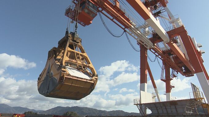 メキシコから3週間かけて到着した18万トン級のマンモス船。その荷揚げは、あたかも超巨大なUFOキャッチャーです。バケット自体の重さが21トン。一度に30トンの塩を吊り上げ、それを数千回繰り返し、作業は5日間ぶっ通しで続きます。