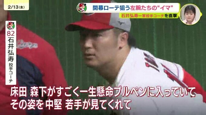 この床田を筆頭に広島の先発左腕にはいい投手が多いという石井コーチ。その中でもイマ一番勢いがあると期待を寄せている若手がいます。