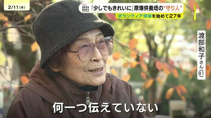 原爆供養塔の清掃を続ける 渡部和子さん(81)