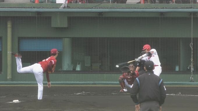 17日の楽天との練習試合で左ピッチャーの古謝樹から右打席で2安打を放っています。