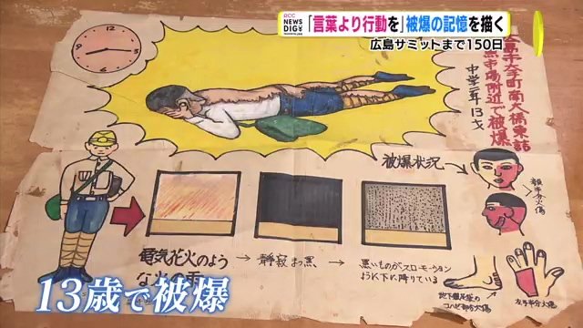 広島の話題を「深掘りNEWS DIG」 広島サミットまで150日 「言葉よりも行動を」被爆の記憶を描く 2022年12月25日(日) 07:00 国内 G7広島サミットまで150日を切りました。岸田総理は、核兵器のない世界へ向け、力強いメッセージを発信したいと力を込めます。原爆の記憶を絵に残し続けている被爆者は、「言葉よりも行動を」と訴えています。岸田…