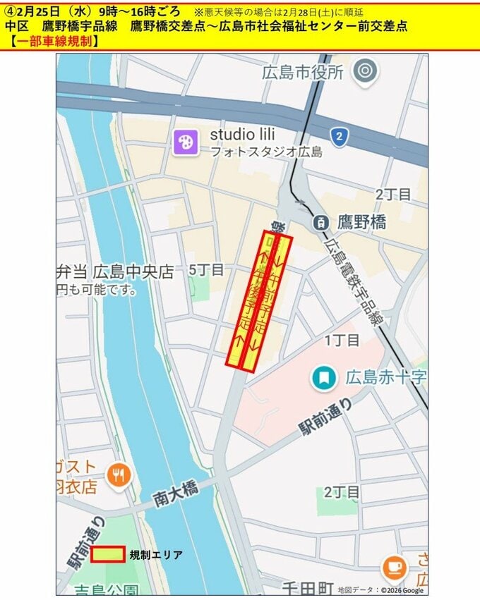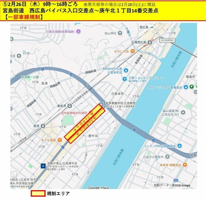 計6日間程度 広島市中心部で交通規制 具体的な日時と場所は?