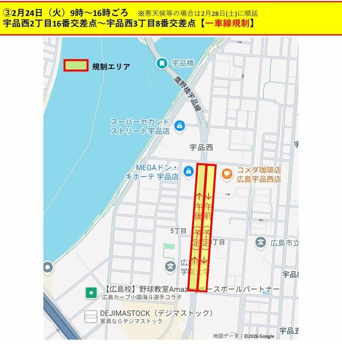 西区庚午北 国道2号宮島街道(一部車線規制)