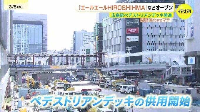 きょう、広島駅ビルと名称を新たにした『エールエールHIROSHIMA』を直結するペデストリアンデッキの供用が始まりました。