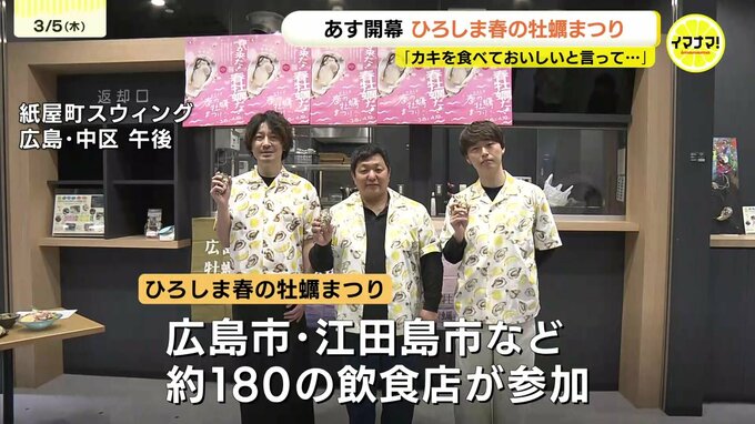 「ひろしま春の牡蠣まつり」は、広島市や江田島市など、過去最多となる約180の飲食店が参加します。