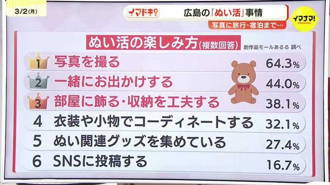 調査データ(創作品モールあるる調べ)によると、ぬい活の楽しみ方は多岐にわたります。