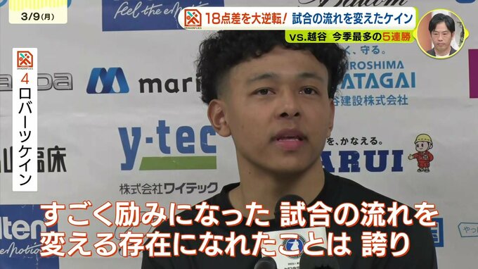 広島ドラゴンフライズが不屈の6連勝!18点差を跳ね返した「覚醒」のケインと「完全復活」の寺嶋が魅せた逆転劇 CS進出へ 2026年3月9日(月) 22:11 スポーツ ゲーム1:最大18点差からの逆転劇 7日のゲーム1、広島は前半だけで越谷に62失点を喫し、第3クォーター残り5分には最大18点のリードを許す苦しい展開となりました。 この窮地を救ったのが、ロバーツ・ケイン選手です。