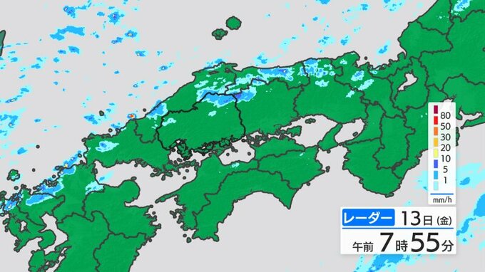 けさ(13日朝)の広島県内は、寒気が南下し北部で雪の降っている所があります。最低気温は、世羅-3.1℃ 三次-2.0℃ 広島市中区5.4℃などを記録しています。