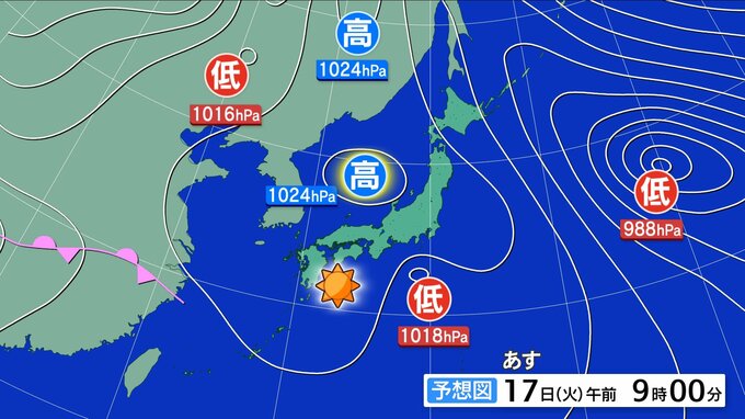 17日(火)安定した晴天 一日の寒暖差・乾燥・花粉に注意 日中はぽかぽか陽気