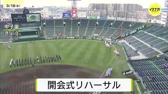 いよいよあす19日に開幕する春のセンバツ。33年ぶりに甲子園に出場する崇徳高校が開会式のリハーサルに臨みました。