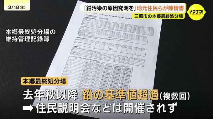 本郷最終処分場からは去年秋以降も、地下水から基準値を超える鉛が複数回検出されていますが、それについての住民説明会などは開催されていないということです。