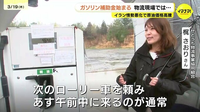 イラン情勢の悪化により元売り側も在庫確保が難しく、配送が追いついていないといいます。加盟する25の運送会社には「タンクが空になる可能性がある」と異例の通達が出されました。