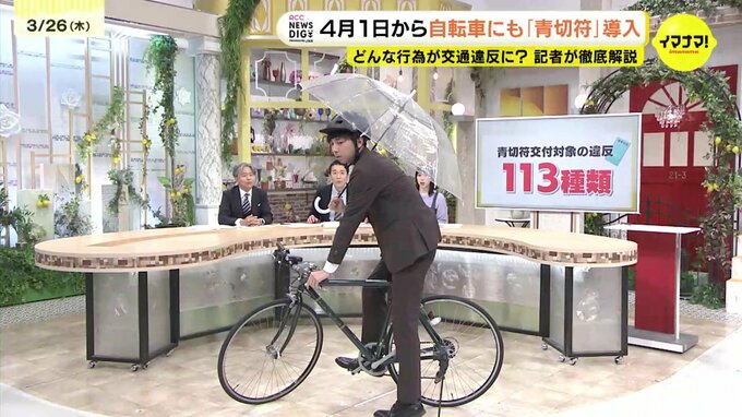 このように傘を差しながら運転する方もいると思いますが、これも青切符対象です。傘差し運転の反則金は5000円です。