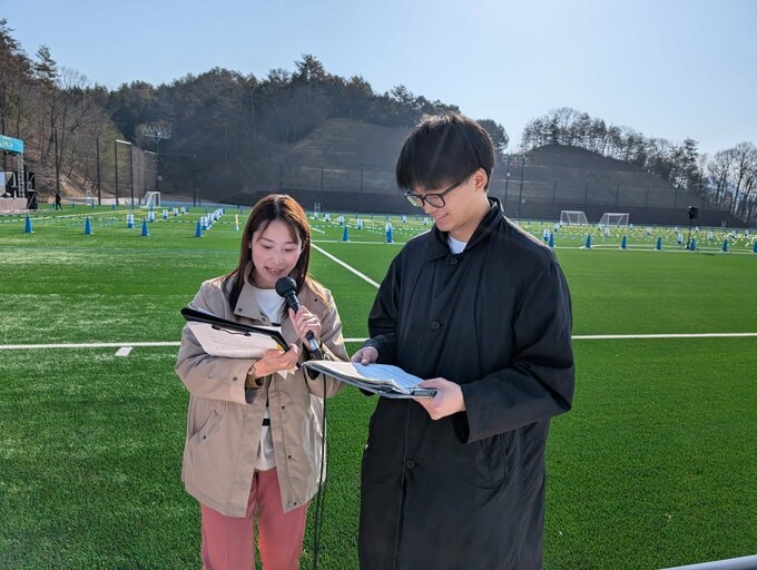 ★イベント運営は宮島ユナイテッドFCの皆さんなど多くの方に支えていただきました。中村孝宏代表にラジオカーインタビュー。