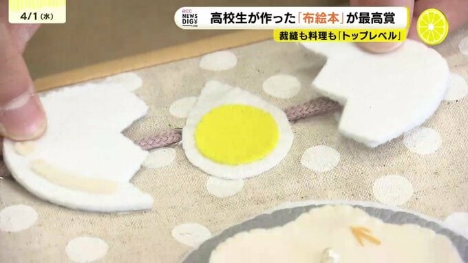 広島県立海田高校の生徒がつくった布絵本が「文部科学大臣賞」を受賞しました。子どもが喜ぶ仕掛けがたくさん詰まった作品。製作した生徒を取材しました。