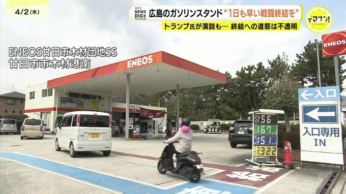 廿日市市のこちらのガソリンスタンドでは、仕入れ値の高止まりや競合他社の値上げを受けて、2日から3円値上げして156円としました。