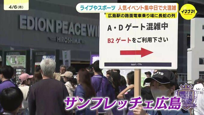 「試合が終わりサンフレサポーターたちが帰って行く一方で、反対側にはこれから始まるイベントに向かう人たちで賑わっています」