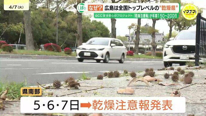 4日から5日にかけては、活発な雨雲が県内を通過し、今年1番の雨量となったところもありました。雨の翌日から3日連続で、県南部には乾燥注意報が発表されています。冬から春にかけては、全国的に乾燥する季節ですが、実は、広島は乾燥具合が全国トップレベルなのです。