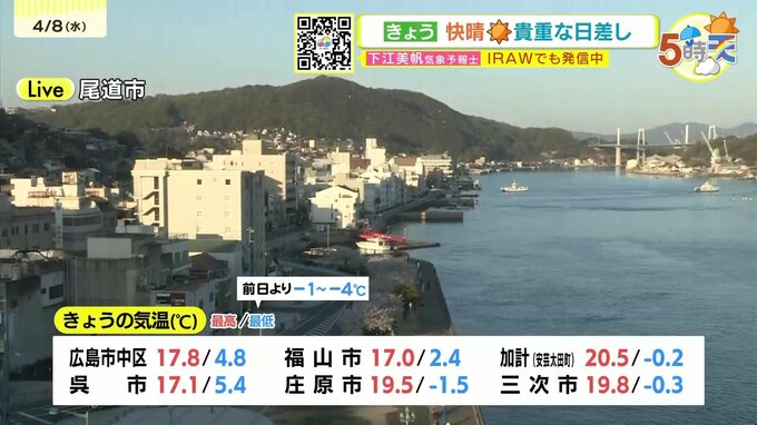 4月8日(水) 午前中は日差しも次第に下り坂 夜には広く雨 強まる時間帯も