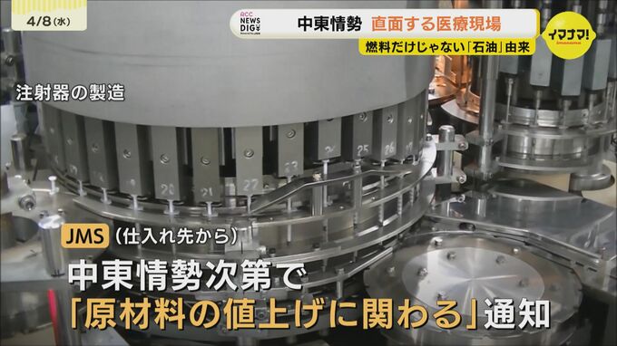 用途に応じて10種類以上の注射器を製造する同社にとって、原料となる「ナフサの安定確保」が、欠かせません。