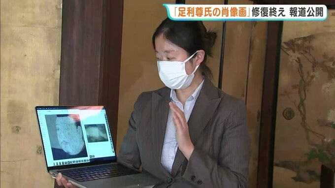 室町幕府を開いた将軍・足利尊氏を描いたと伝わる肖像画が修復を終え、報道陣に公開されました。