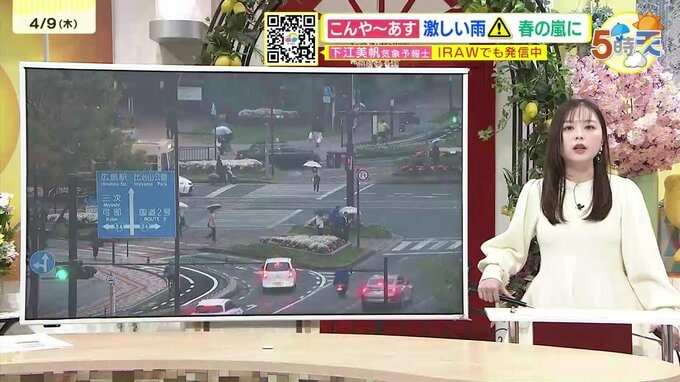 【あす4/10(金)広島天気 】 夕方にかけて大気非常に不安定 朝まで雷伴い激しい雨も 春の嵐に 2026年4月9日(木) 19:30 国内 天気 きょう9日(木)の広島県内は、朝から雨が降った所があり、夕方以降再び大きく天気が崩れ、雷を伴い雨脚が強まりました。日中の気温は平年より1℃~5℃ほど低くなり、空気がひんやりした一日でした。前線上の低…