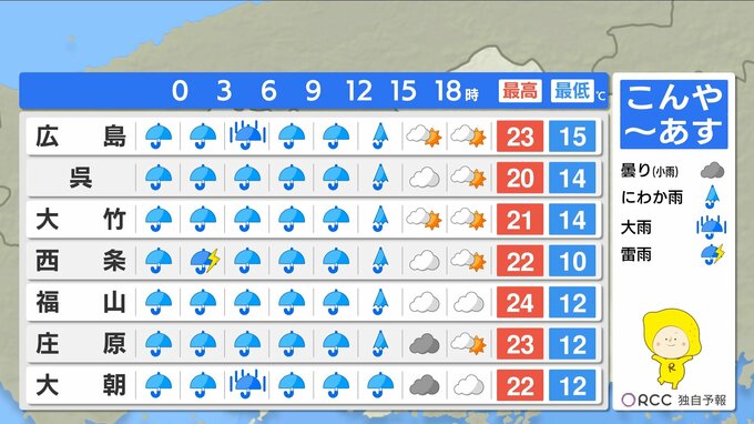 【あす4/10(金)広島天気 】 夕方にかけて大気非常に不安定 朝まで雷伴い激しい雨も 春の嵐に 2026年4月9日(木) 19:30 国内 天気 南風吹き暖かい 日中は20℃超え 雨が降り、朝の冷え込みはほとんどありません。日中の気温は20℃を大きく超える所が多く、前線や低気圧に向かって南風が吹くため、暖かい一日になりそうです。