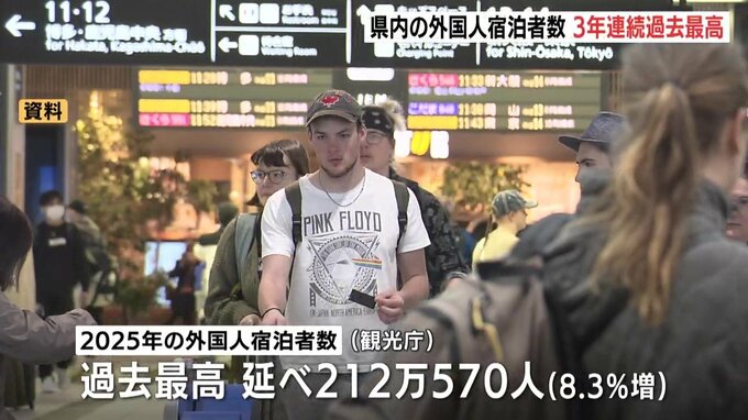 県内の外国人宿泊者数は3年連続で過去最多を更新していて、200万人を超えたのは初めてです。