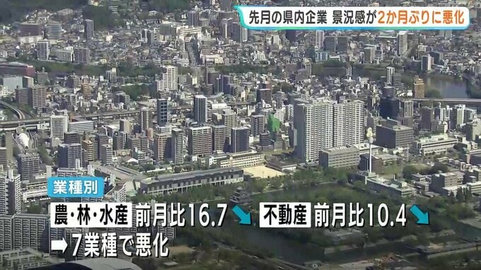 業種別では▼『農・林・水産』が前の月に比べ16・7ポイント減少。▼『不動産』は前の月に比べ10・4ポイント減るなど、7つの業種で悪化しました。一方で『金融』や年度末の需要期に入った『小売』は改善しています。