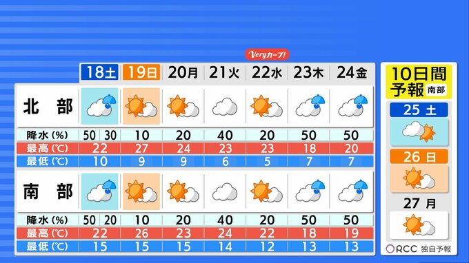 天気は周期変化し、日曜日・月曜日はよく晴れて気温が上昇するでしょう。暑さ対策も必要となります。火曜日はすっきりせず、水曜日は晴れる予想です。最高気温は、25℃以上の地点がたびたび出る予想です。気象庁は高温に関する情報を発表しています。それによりますと、中国地方の向こう2週間の気温は暖かい空気に覆われやすいため高く、かなり高い日が多い見込みです。体調管理にはご注意ください。