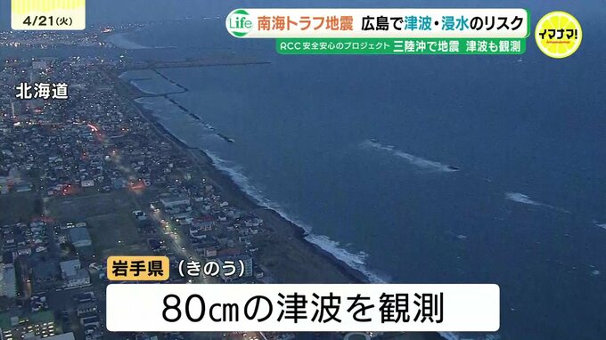 東北の三陸沖で20日に発生した地震では、津波も観測されました。今後、南海トラフ地震が発生した場合、広島県では津波に加え、浸水するリスクを抱えています。