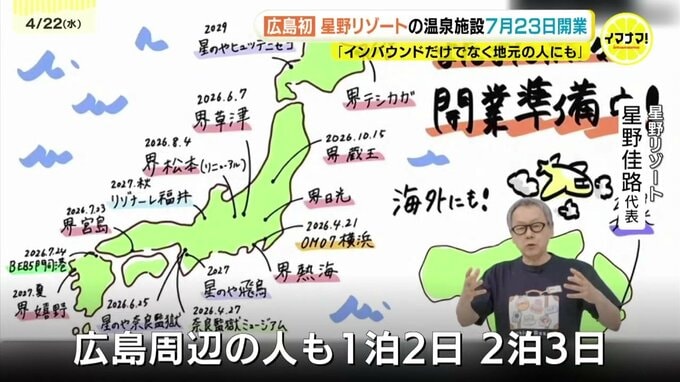 「広島周辺の方々も1泊2日、2泊三日くらいで訪れて、地元のお客様も温泉旅館滞在として施設を使っていただけるような設計にしています」