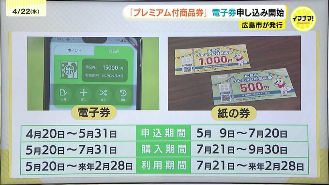 広島市が発行する「プレミアム付商品券」のうち、スマホで利用できる「電子券」の申し込みが始まりました。広島市は開始からおよそ1日で、1万5359件の申し込みがあったと発表しています。「電子券」と「紙の券」の違いなどをまとめました。