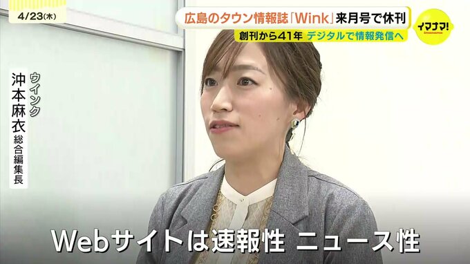 創刊41年を迎えた広島のタウン情報誌「Wink」についてです。月刊誌を来月号で休刊し、デジタルメディアとして情報発信することになりました。