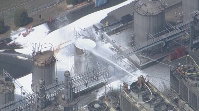 この火事で、タンクの近くで作業をしていたとみられる、兵庫県や三次市に住む20代の男性3人と、30代の男性2人の合わせて5人がけがをして、病院に運ばれました。