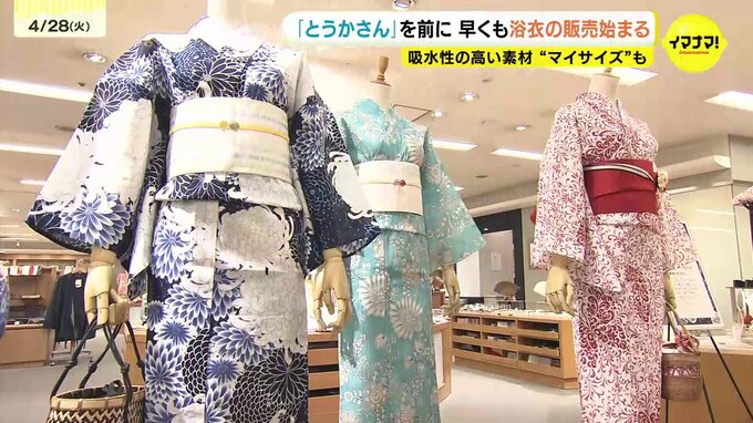 浴衣の着始めの祭りとして知られる6月の「とうかさん」を前に、広島市内のデパートで早くも浴衣の販売が始まりました。最新のトレンドから、驚きの「機能性浴衣」まで、取材してきました。