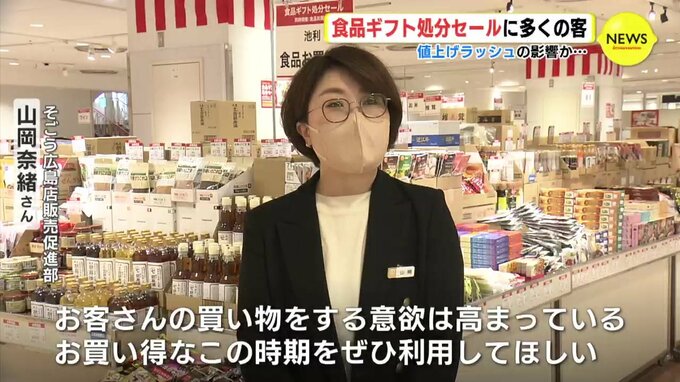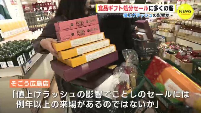 広島市のデパートで18日、お歳暮ギフトをお得な値段で販売するセールが始まりました。食品の値上げラッシュが続いていることも影響してか、多くの客が訪れています。